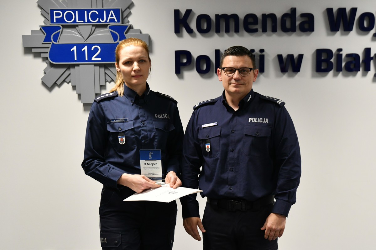 Moniecka policjantka, asp.szt. Agnieszka Kamińska zajęła drugie miejsce w konkursie oskarżyciela publicznego garnizonu podlaskiego 2025 roku.