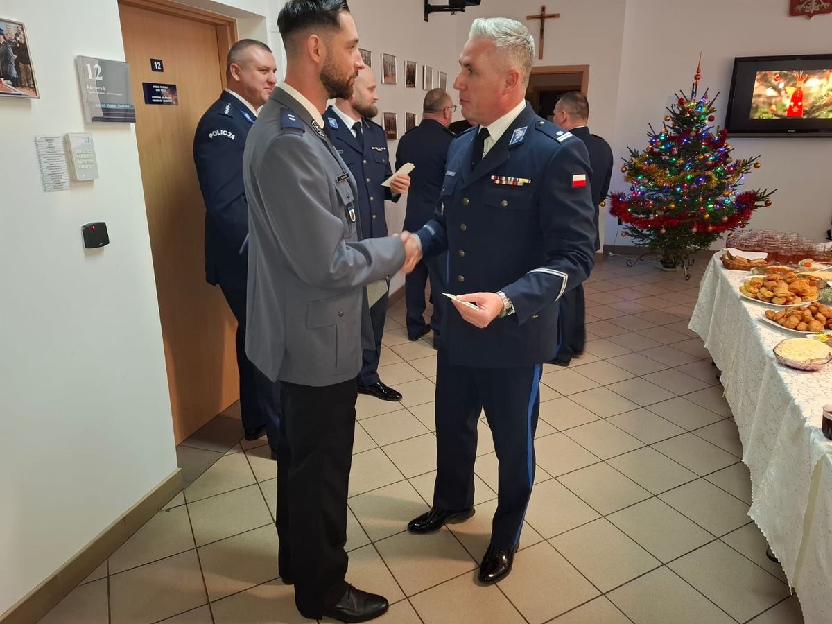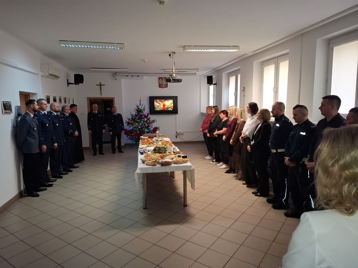 W prawdziwie świątecznym nastroju i bardzo serdecznej atmosferze odbyło się uroczyste spotkanie opłatkowe kierownictwa Komendy Powiatowej Policji w Mońkach z całą kadrą funkcjonariuszy oraz pracowników cywilnych. Policyjna Wigilia była wyjątkową okazją do złożenia sobie świątecznych życzeń i podziękowania za służbę i pracę w 2025 roku. Komendant Powiatowy Policji w Mońkach podinspektor Łukasz Gańko wraz z zastępca podinspektorem Grzegorzem Obrębskim przekazał wiele najlepszych życzeń nie tylko na zbliżające się Święta Bożego Narodzenia, ale też na nadchodzący Nowy Rok.