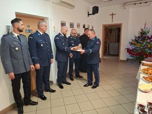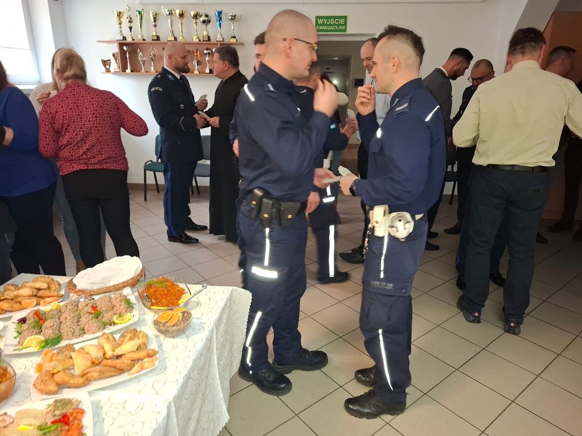 Po błogosławieństwie wszyscy zgromadzeni podzielili się opłatkiem i złożyli sobie wzajemne życzenia. Zaproszeni goście i uczestnicy, tej na stałe już wpisanej do policyjnego kalendarium bardzo podniosłej uroczystości, mogli wspólnie skosztować przygotowanych w ramach poczęstunku wigilijnych potraw.