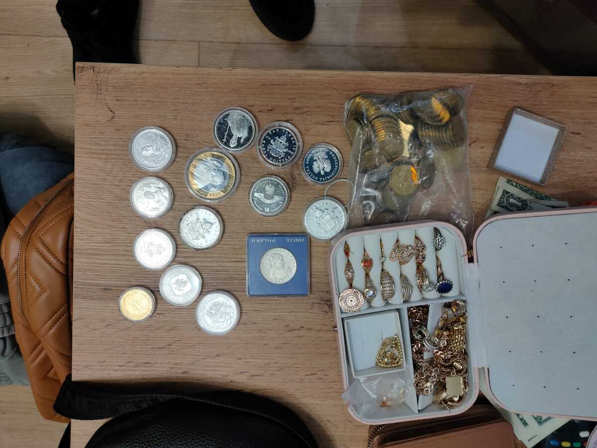 Opis filmu: zdjęcia zabezpieczonych skradzionych przedmiotów- biżuteria, monety, pieniądze, film- policjant rozkłada pieniądze, zdjęcie policjantów z zatrzymanym