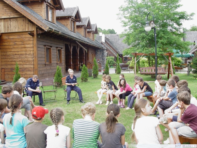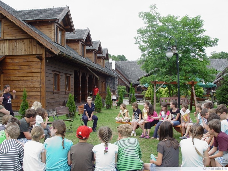 Wczoraj monieccy policjanci spotkali się z młodymi ekologami aby przypomnieć zasady bezpiecznego wypoczynku podczas wakacji. Dzieci zaimponowały mundurowym szeroką wiedzą na temat fauny i flory Biebrzańskiego Parku Narodowego. Ponieważ przebywają w samym jego sercu policjanci najwięcej uwagi poświęcili bezpieczeństwu w lesie, na kąpieliskach oraz podczas wycieczek szlakami turystycznymi. Młodzi ludzie w skupieniu słuchali również przestróg przed kontaktami z obcymi oraz zagrożeń płynących z Internetu. Na koniec spotkania zadawali mundurowym wiele pytań odnośnie wyposażenia, umundurowania oraz stopni policyjnych, a także kryteriów przyjęcia do służby w Policji.