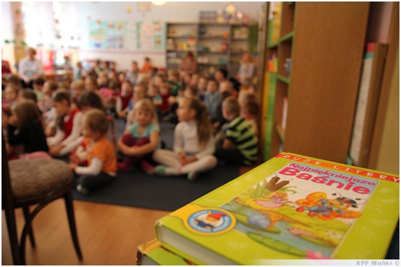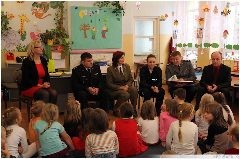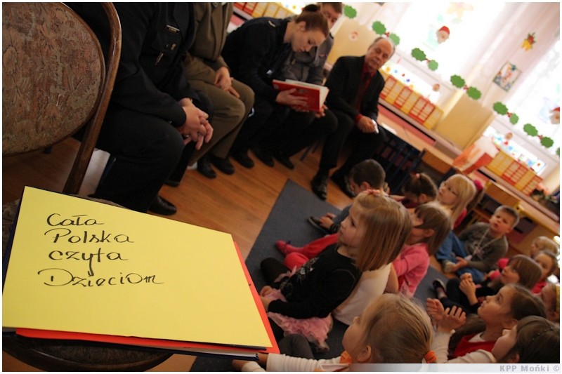 Dziś w monieckich przedszkolach kontynuowano akcję „Cała Polska czyta dzieciom”. Komendant Powiatowy Policji w Mońkach wraz z przedstawicielami Nadleśnictwa, Straży Pożarnej oraz Urzędu Miasta w Mońkach czytali wybrane bajki przedszkolakom.